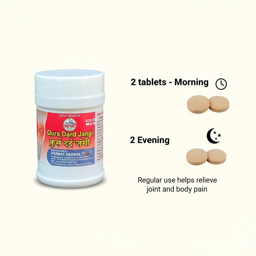 Qurs Dard Jungi is a traditional Unani or herbal medicine commonly used in South Asia for musculoskeletal issues. Based on its advertised claims, it is said to be beneficial for:
